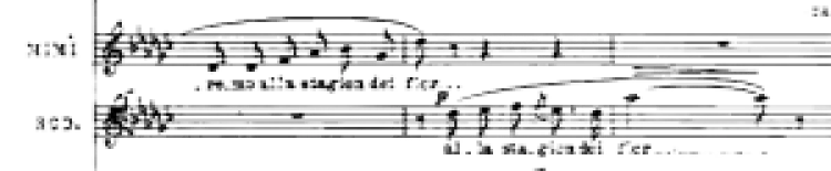 Nur daß k e i n Winter ewig währt. Und Rodolfo, der Mimìs Tod als letzter erfaßt, kann seine Zeilen kaum mehr singen, zerlegt sie auf einem Ton, der nichts mehr trägt. Quel guardami così: „Weshalb schauen mich alle so an?“ Erst als Marcello sagt: „Coraggio“ (Mut im Sinn von „Fasse dich“), beginnt er zu begreifen und bricht über der Toten zusammen, zweimal ihren Namen rufend – doch melodisch ohne Bewegung, nur Stimme noch, „Mimì!“, und Atem, erdnah gebrochen „Mimì!“
